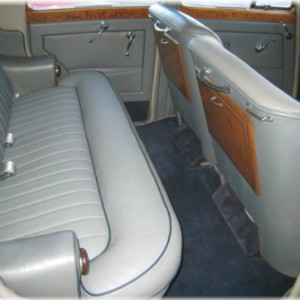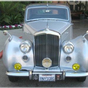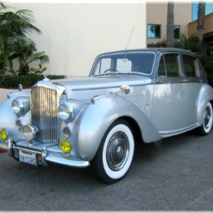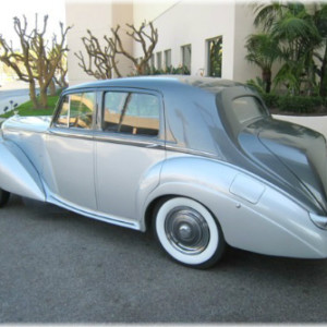 This newest addition to our fleet is a very special Bentley we know you’ll enjoy. It is a beautiful tudor gray and silver Bentley R-Type Sports Saloon. The interior is gray leather with midnight blue piping. Only 2,018 of these steel body and frame beauties were made between 1952 and 1955. That equates to only 505 per year! This was the second model Bentley produced after WW ll. It improved on its predecessor (the Mark Vl) by offering a bigger engine and trunk. Back then, the R-Type was known as the “big bore”, “big boot”, sports saloon. It instantly became the perfect continuation to Bentley’s already famous reputation of building the best silent sports cars that also maintained the elegance and grace of luxury machines. It was capable of speeds well over 100 mph! It’s Rolls-Royce “sister” version was known as the “big boot” Silver Dawn.This particular model has been meticulously cared for by one of the top Rolls-Royce and Bentley mechanics in Southern California. This explains why she runs and drives like the day she was built. It’s also the reason her air conditioning blows so cold. This is the only legal Bentley R-Type we know of for hire in Southern California. Book her, and you’ll not only enjoy her great body style and smooth ride, but you’ll get to enjoy one of the largest, factory installed sunroofs, you’ve ever seen.